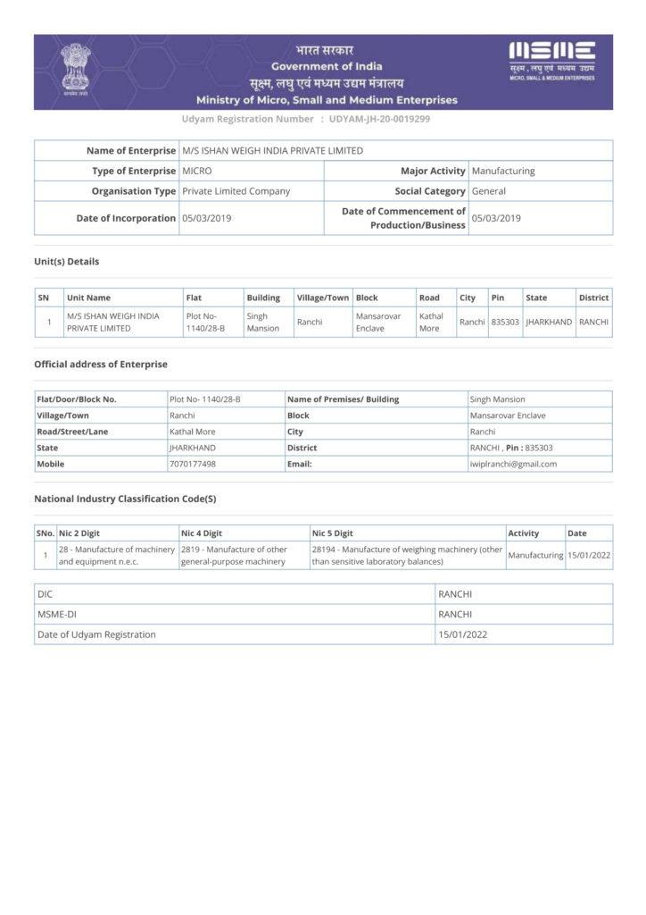 We present ourselves as an progressive ISO 9001-2015 certified company under make in India movement as an startup company recognized by government of India ministry of commerce and industry. We are manufacturing weighbridge and weighing systems. We do sales and services of our system.